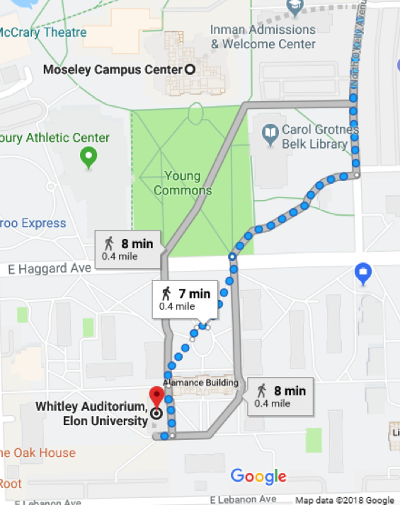 - Elon Center for the Fine Arts will be on your left.